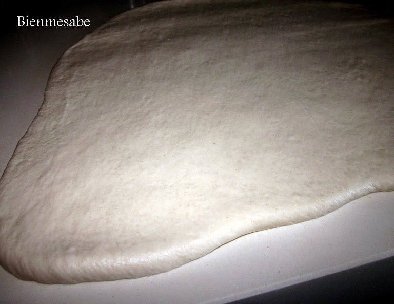 Depositamos la bola en un bol y tapamos con papel film y dejamos levar por espacio de una hora o algo más.